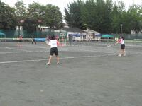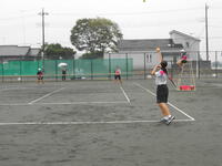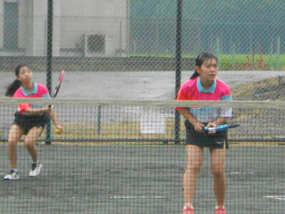 【女子ソフトテニスの様子】喜連川中学校との対戦です。日頃の練習の成果が表れ、ペアの息がぴったりでした。
