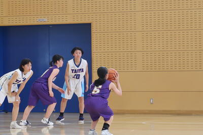 【バスケットボールの様子】バスケットボールは5チームのリーグ戦で2日間行われます。今日は氏家中・阿久津中と対戦しました。高さ・スピードに勝る氏家中には、粘り強いディフェンスが功を奏し、負けはしましたが善戦しました。