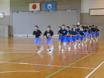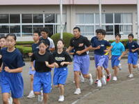 【朝の練習】今日から2・3年生中心に10月に行われます「地区駅伝競走大会」の練習が開始されました。この練習は持久力(心肺機能)を高めるトレーニングですので、今後の生活や部活動にも活かされます。