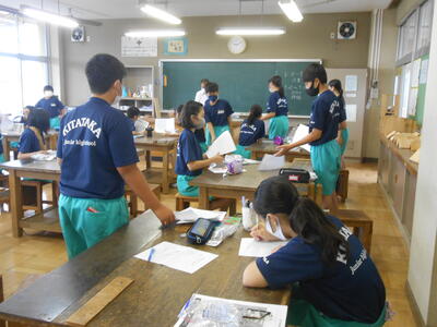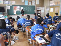 1年3組「英語」先生からの質問に英語で答えていました。