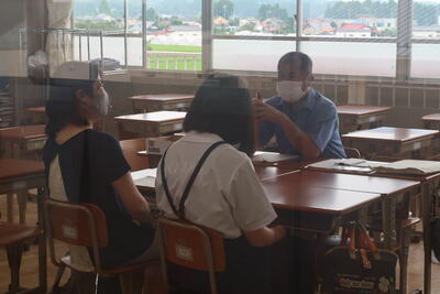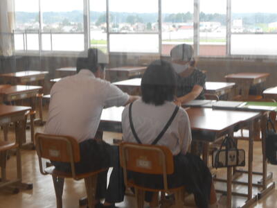 【三者面談の様子】雨の中、ありがとうございます。