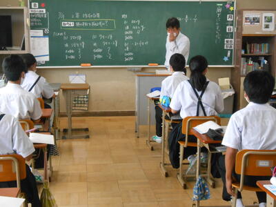 【授業参観】3年1組「数学」2次方程式の問題を公式に当てはめながら解いていました。