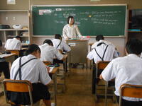1年3組「英語」本文の内容を全員で音読し、暗記していました。
