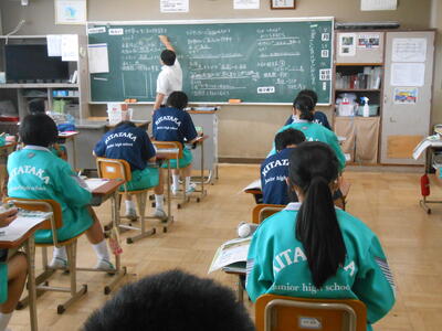 2年1組 統計上、問題に対して無回答の生徒は成績が向上しずらいとのこと。間違ってもいいから最後まで諦めず問題を解いてほしいですね。