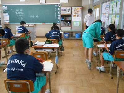 朝から肌寒く、この時期では過ごしやすい日となりました。県内の新型コロナウィルス感染者が16名との発表があり、県中学校新人大会も中止となりました。本当に残念なことです。夏休み中の生活についても感染症対策を十分に行うことが必須ですね。