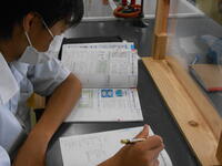 1年3組「技術」木材加工の設計図を作成していました。