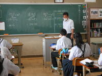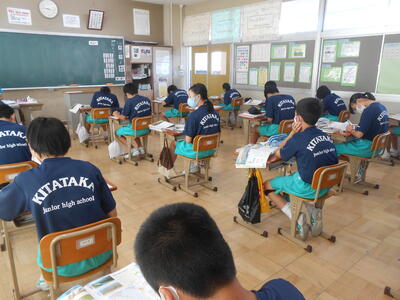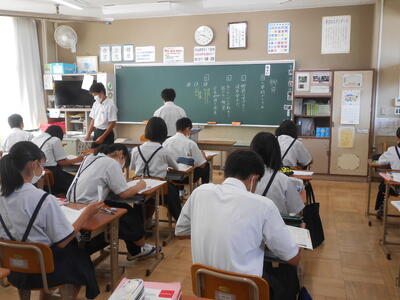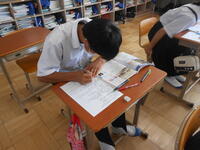 2年1組「国語」”鰹節”について要点をまとめていました。終わった生徒は先生に確認してもらいました。