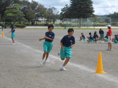 1年「保健体育」陸上競技のリレーを活用し、体育祭種目「クラス対抗全員リレー」を行っていました。バトンパスの練習が生かせているでしょうか。