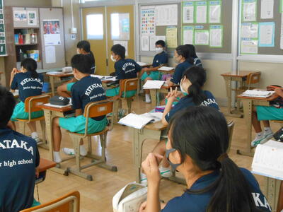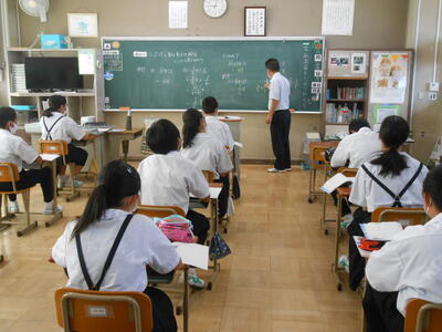 夏休みが終了し、今日で1週間が経ちました。残暑が厳しい中、生徒は集中して授業に取り組んでいます。来週から通常日課となり、給食や部活動もありますので体調管理が重要です。暑さのせいで冷たいものを食べたり飲んだりしすぎると胃腸炎などになりやすいので気をつけましょう。