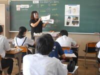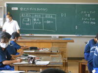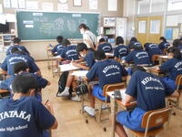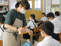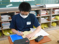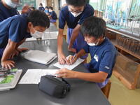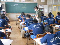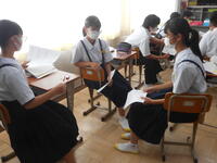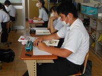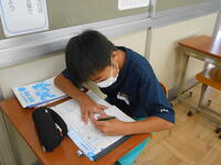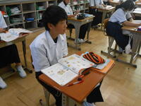 2年1組「国語」”鰹節”について要点をまとめていました。終わった生徒は先生に確認してもらいました。