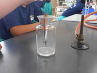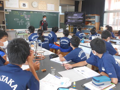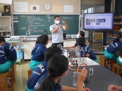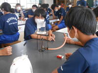 【授業参観】1年1組「理科」物質を燃焼させた時に二酸化炭素が発生するか実験で確認していました。