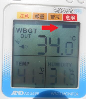 現在10:40です。WGPT測定器は危険を示しています。そのため、保健体育は「保健学習」を行いました。