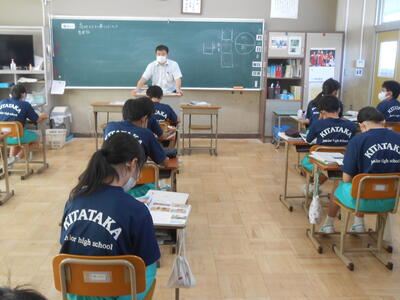 今日も日差しが校舎内に差し込み、教室内は空調設備を使用しながら換気に努め、3密にならないよう対応しています。