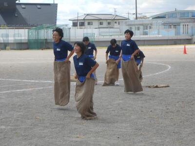 1年「保健体育」陸上競技のリレーを活用し、体育祭種目「クラス対抗全員リレー」を行っていました。バトンパスの練習が生かせているでしょうか。