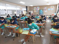 2年1組「国語」反対意見文を作成していました。お互いの意見を読みながら自分の意見についてさらに深めていました。