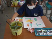 1年3組「美術」漢字一文字をデザイン化し、彩色をしていました。工夫した作品がたくさんありました。