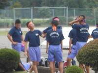 【駅伝朝練習】夏休み明けから取り組んできた駅伝の練習も県大会及び地区大会開催が決まり、一段と熱が入ってきました。今年は例年と違い、競技場(トラック)でのタイムレースとなりました。今日も200mのトラックをペースを決めて走り続けていました。辛いけどがんばれ!