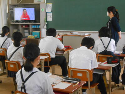 【授業参観】3年1組「社会」人種差別の内容の映像を真剣に見ていました。
