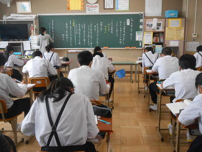 3年3組「国語」万葉集や古今和歌集を読んで、当時の作者の心情を捉えていました。
