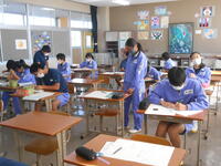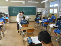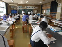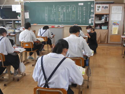 3年1組「実力テスト」3年生は高校入試に向けて、5教科の復習テストを実施しています。1・2年生で学習した内容も出題されるので、日頃の学習の成果が表れます。
