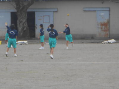 1年女子「保健体育」ソフトボールの練習です。柔らかいボールを使用し、きちんと投げたり取ったりできることが基本です。さて、どうでしょうか。