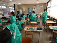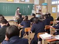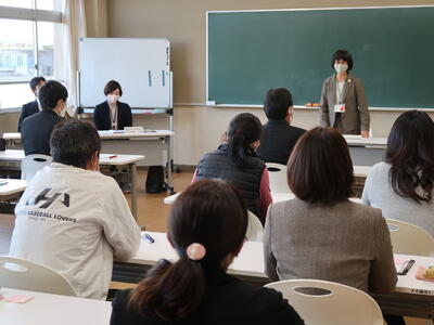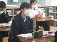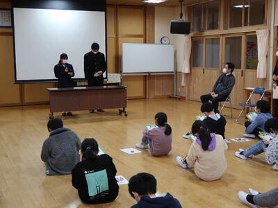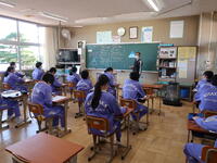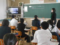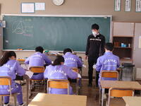 【東小学校入学説明会】午前中に東小学校の児童対象に「中学校入学説明会」を行いました。1年生の授業を参観した後、東小卒業生の先輩から中学校の生活や今のうちにやっておくことなどの説明がありました。