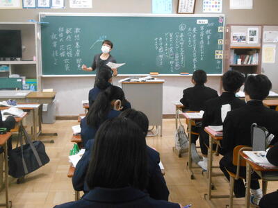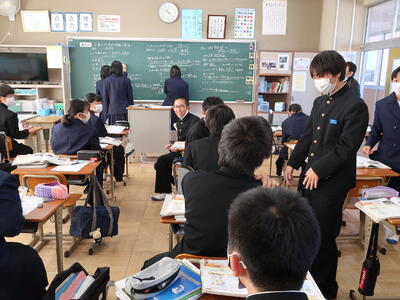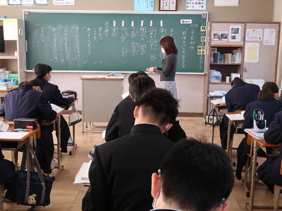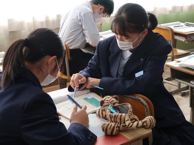 1年3組「英語」中間テストの振り返りを行っていました。1年生の問題が基本です。しっかり覚えましょう。