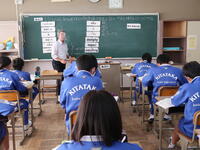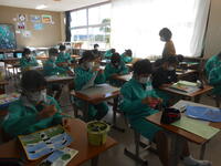 1年3組「英語」本文を理解していました。いつ ~ しますか? どこで ~ しますか?