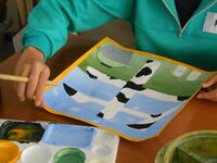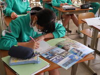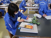 1年1組「美術」デザイン画の彩色です。各自が工夫してきれいに仕上げていました。