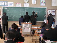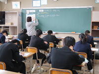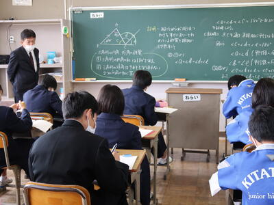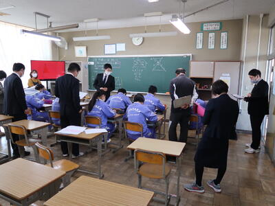 【学力向上研究授業】5時間目に3年「数学」と「英語」の4コースの授業研究会を行いました。小学校の先生も参観に来ていただき、生徒も緊張していたようです。