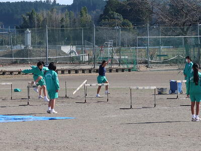 1年「保健体育」女子はハードル、男子は走り幅跳びを行っていました。どちらとも助走のリズムが大切です。