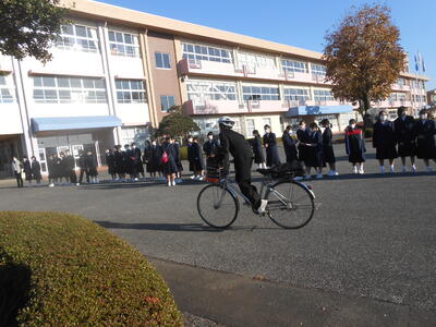 小雨降る肌寒い朝を迎えました。そんな中、生徒は時間を守って安全に登校しています。これからさらに冷え込み、路面も凍結する場合があります。布団から出る時間を少し早め、余裕を持って登校してほしいです。
