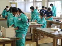1年2組「技術」木材加工で、カンナをかけてきれいに仕上げていました。