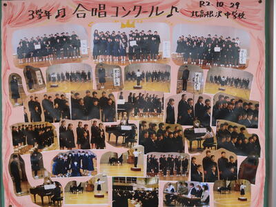 【校内散策】3年生の廊下には「合唱コンクール」の写真が掲示されていました。
