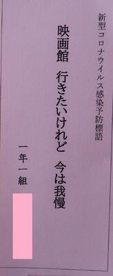 保健体育委員会で募集した「コロナ予防標語」が校内に多くの生徒の標語が掲示されています。※一部掲載