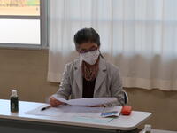 【学校運営協議会】地域の代表者の方にお集まりいただき、「学校運営協議会」を開催いたしました。本校の経営方針の説明や生徒の活動の様子等を拝見していただきました。今後も学校経営の助言をいただき、素晴らしい学校を目指したいと思います。
