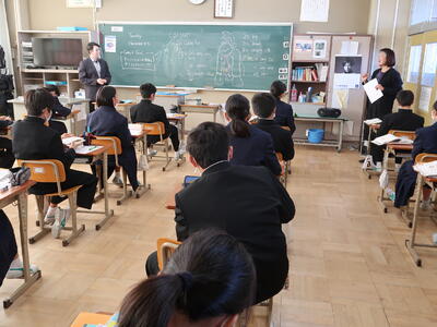 【人権教室】1年生対象に「人権教室」を行いました。はじめにスマホ・携帯の安全な使い方を説明いただき、最後に人権擁護員の方からお話しをいただきました。いじめや誹謗中傷等が多い世の中ですが、本校ではいじめのない学校生活を送ってほしいです。