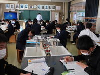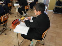 3年2組「社会」中間テストの振り返りを行っていました。難しかったようです。