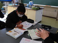 3年2組「英語」本文の単語の意味と発音についてしっかり学んでいました。