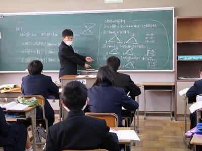 3年2組「数学」”三角形と比” の定理についての問題を多く解いていました。