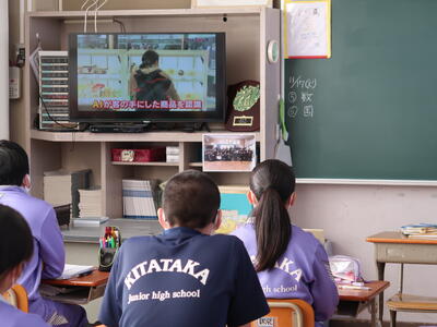 【授業参観】3年1組「社会」現代の科学の発達について映像で確認していました。今は電子化が進み、お金の支払いもすべてカードや携帯電話等で行えます。AI(人工知能)の時代ですね。