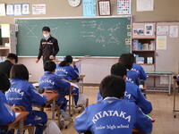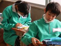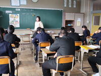 【東小学校入学説明会】午前中に東小学校の児童対象に「中学校入学説明会」を行いました。1年生の授業を参観した後、東小卒業生の先輩から中学校の生活や今のうちにやっておくことなどの説明がありました。
