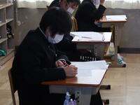 【テストの様子】テスト最終日、残り2教科です。今日は静かに教室内に入り、生徒の回答状況を確認しました。空欄(無回答)が無いようにしっかり文字を書いていたのが印象的でした。わからなかった問題や間違った問題は早めに解決しましょう。