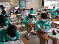 1年1組「国語」竹取物語を歴史的仮名遣いに気をつけて音読していました。