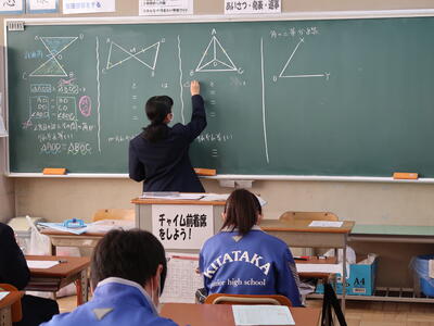 2年「数学」対頂角や同位角、錯角などを活用して問題を解いていました。