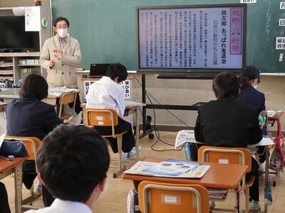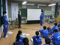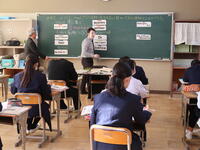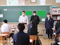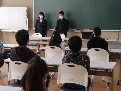 【東小学校入学説明会】午前中に東小学校の児童対象に「中学校入学説明会」を行いました。1年生の授業を参観した後、東小卒業生の先輩から中学校の生活や今のうちにやっておくことなどの説明がありました。