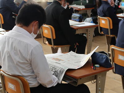 本日の新聞を見て話している内容を理解しています。ところで生徒は新聞を読んでいるのでしょうか。