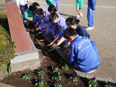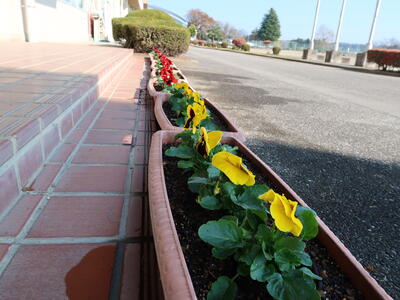 【委員会活動】環境緑化委員会で花壇やプランターに花を植えてくれました。きれいな学校を目指します。
