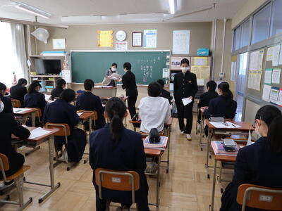 3年2組「社会」市長選挙の立会演説会を生徒が立候補者になり、方針を述べていました。どの立候補者も素晴らしい内容でした。