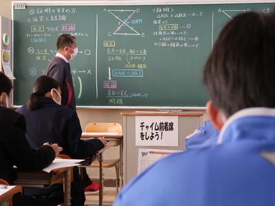 【授業参観】3年1組「数学」円周角の定理を利用して証明問題を解いていました。